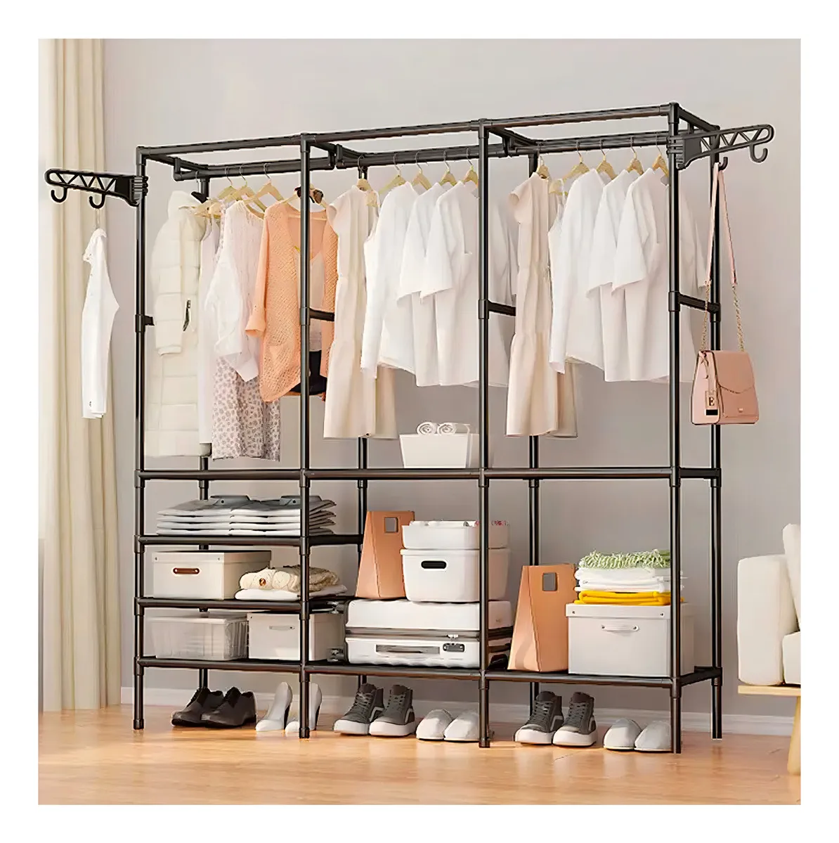 Optimiza tu espacio y organiza tu ropa con nuestro Perchero Organizador de Ropa modelo 8518-3. Este armario multifuncional es una solución versátil y práctica para mantener tu vestuario en orden.