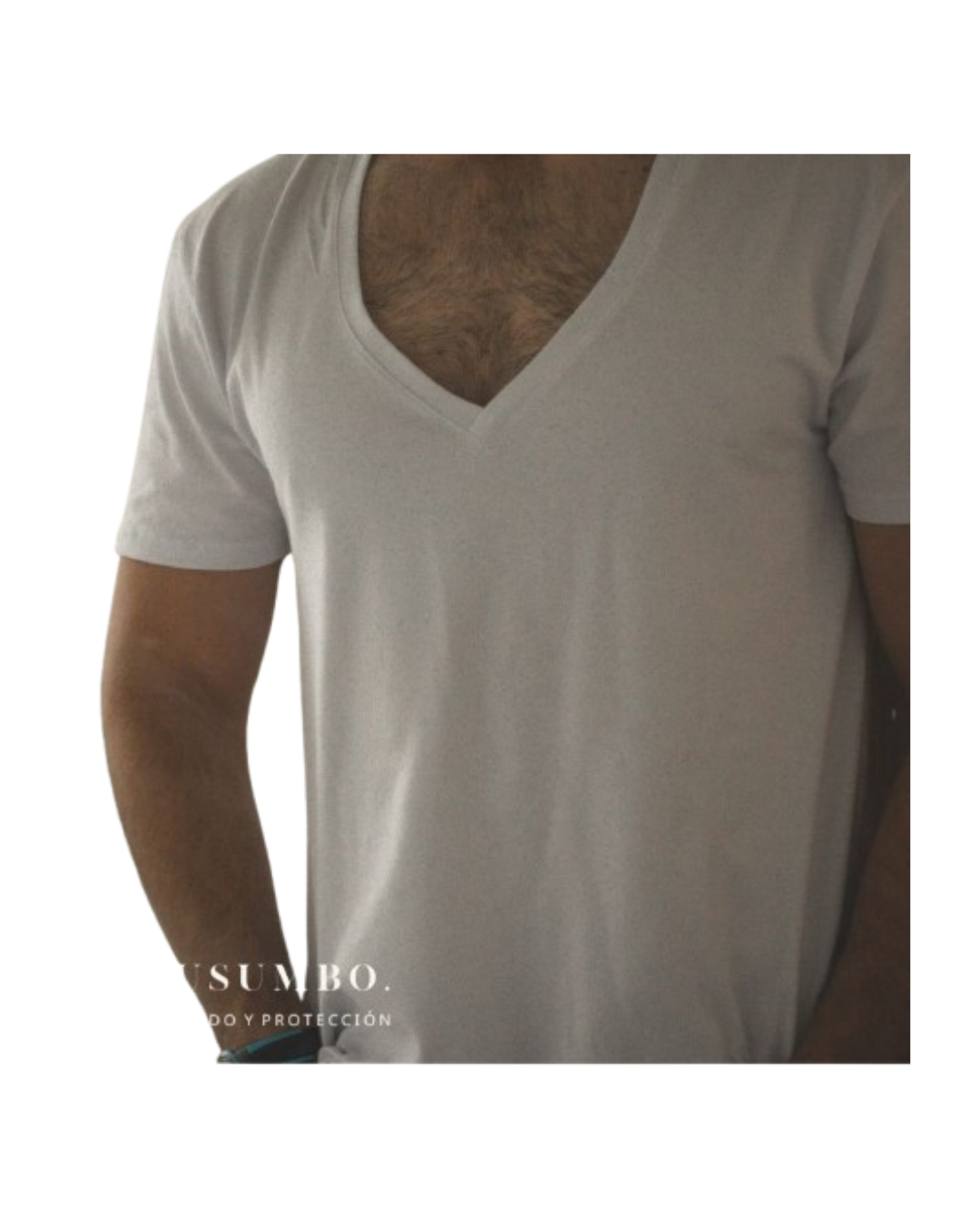 Descubre la elegancia y comodidad con nuestra camiseta interior blanca de cuello profundo, diseñada para quienes buscan un estilo moderno y fresco en su día a día. Ideal para usar debajo de otras prendas sin que se note, protege tu ropa exterior y realza cualquier look casual o sofisticado.