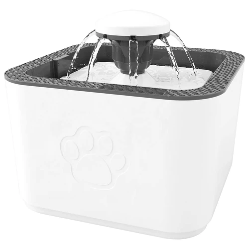 Incluye un sistema de filtración triple con algodón, que elimina las impurezas, escombros y olores del agua. Cuenta con una bomba de agua silenciosa incorporada, de bajo consumo energético y resistencia al agua ipx8. Se recomienda limpiar la bomba al menos cada dos semanas.